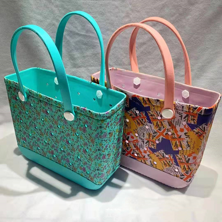 EVA (إيثيلين فينيل أسيتات): الـ EVA مرنة وقوية ولها خصائص جيدة لصد الماء. يتم استخدامها عادة في صناعة الأحذية المطرية والسجاد وغيرها، بفضل وزنها الخفيف، مما يجعلها مثالية لحقائب الشاطئ.