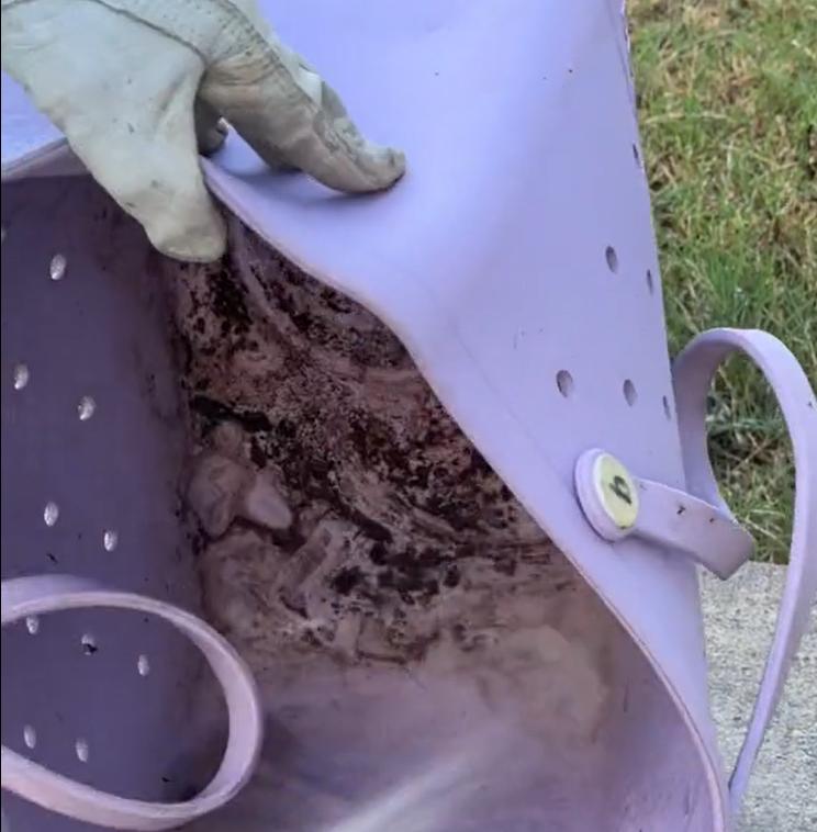 He felt terrible and offered to clean it. Honestly, I didn't think it was salvageable. But, using the very methods I'm about to share with you, he managed to bring it back to almost-new condition! It was truly a "miracle clean," and it's a testament to the inherent properties of EVA. This should be an advertisement for how well these bags clean up! It's funny how popular they've become; they're perfect for the beach, and the fact that they look like a giant Croc is just fitting.